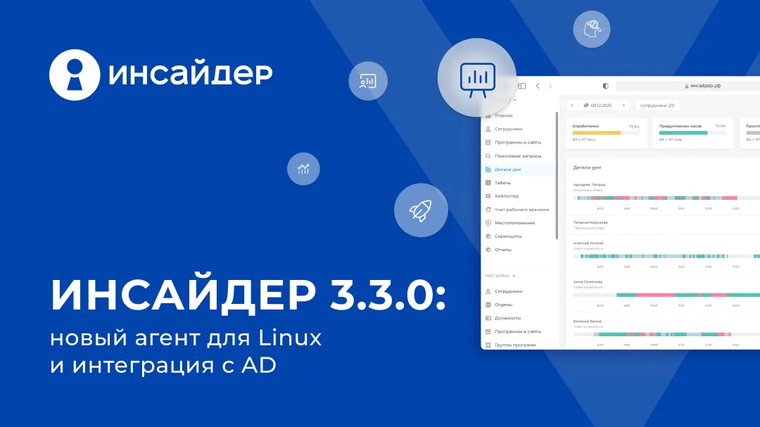 Мы выпустили обновление для «ИНСАЙДЕРа» и готовы анонсировать релиз версии 3.3.0, в которой реализованы ключевые улучшения для корпоративных заказчиков: нативная интеграция с Active Directory и полноценный агент для Linux с расширенным функционалом отслеживания. Подробнее о новых возможностях рассказываем в статье.